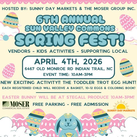 Join us for a vibrant market in downtown Waxhaw! Main Street will be closed off and packed with vendors so you can sip, shop, and stroll on a spring day!