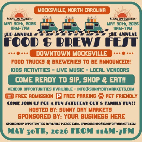 Come out and soak up the fun at the Mocksville Food & Brews Festival! Join us for a full day of food, shopping, and community fun for the whole family in downtown Mocksville.